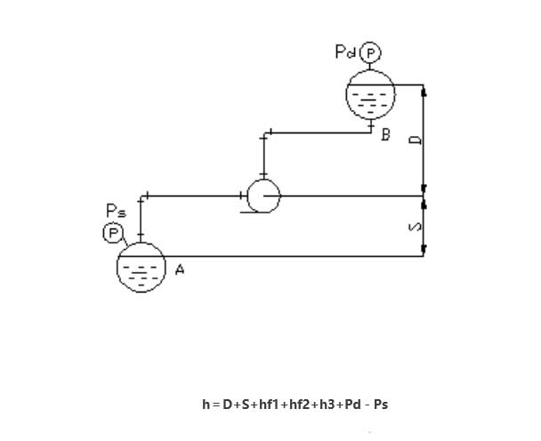 離心泵的揚程計算是選擇泵的重要依據(jù),這是由管網(wǎng)系統(tǒng)的安裝和操作條件決定的。計算前應(yīng)首先繪制流程草圖,平、立面布置圖,計算出管線的長度、管徑及管件型式和數(shù)量。