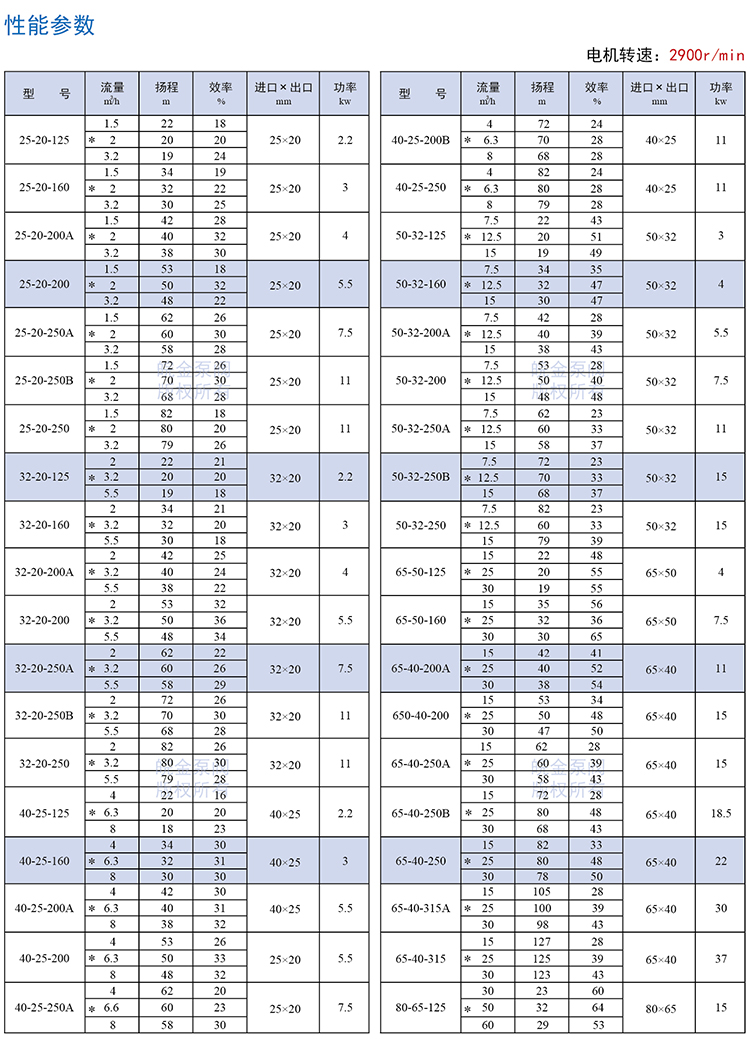 皖金泵閥不銹鋼磁力泵主要參數(shù):