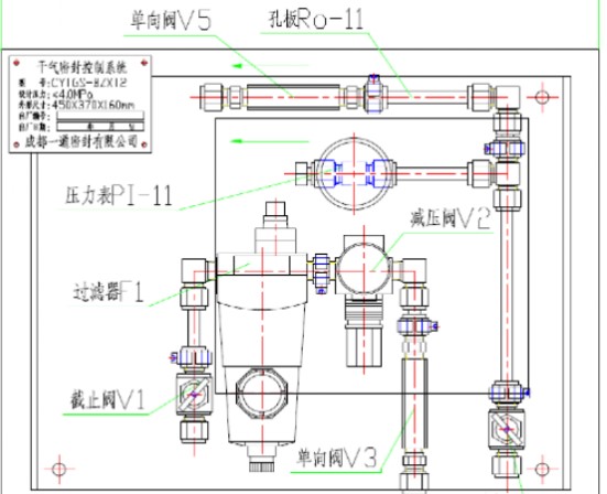 經(jīng)過(guò)減壓閥V2,(減壓到所需壓力0.5MPa,為干氣密封提供穩(wěn)定的密封氣);